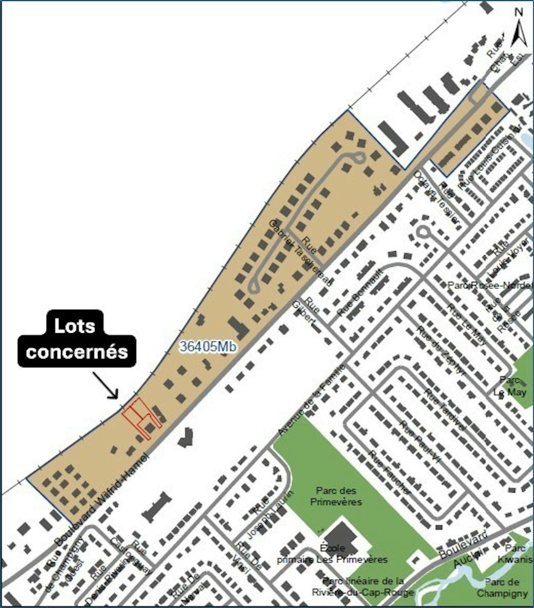 Le propriétaire de deux terrains situés derrière le 7500, boulevard Wilfrid-Hamel, soit au nord du Centre communautaire Champigny, envisage de construire un projet résidentiel comprenant huit logements.