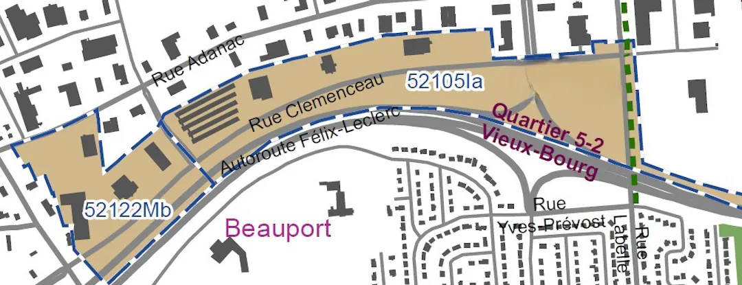 La révision du zonage du parc industriel de Beauport, en vigueur depuis 2024, a restreint certains usages dans la zone 52105Ia. Le propriétaire du 575, rue Clémenceau estime que ces limitations réduisent le potentiel commercial que présentait le bâtiment au moment de son acquisition. Afin de reconnaître et de renforcer le caractère commercial du secteur, il est proposé de créer une nouvelle zone issue de la 52105Ia et d’y autoriser les usages C1 – Services administratifs, C2 – Vente au détail et services et C3 – Lieu de rassemblement, permettant ainsi l’implantation d’une plus grande variété de commerces.
