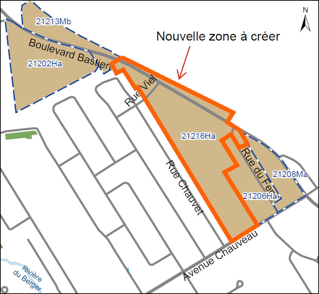 Conformément à sa démarche de planification pour le secteur Louis XIV/Bastien, pour laquelle le voisinage a déjà été rencontré, la Ville souhaite limiter les possibilités de constructions résidentielles sur une portion du boulevard Bastien, entre les rues de la Farinière et du Fenil.